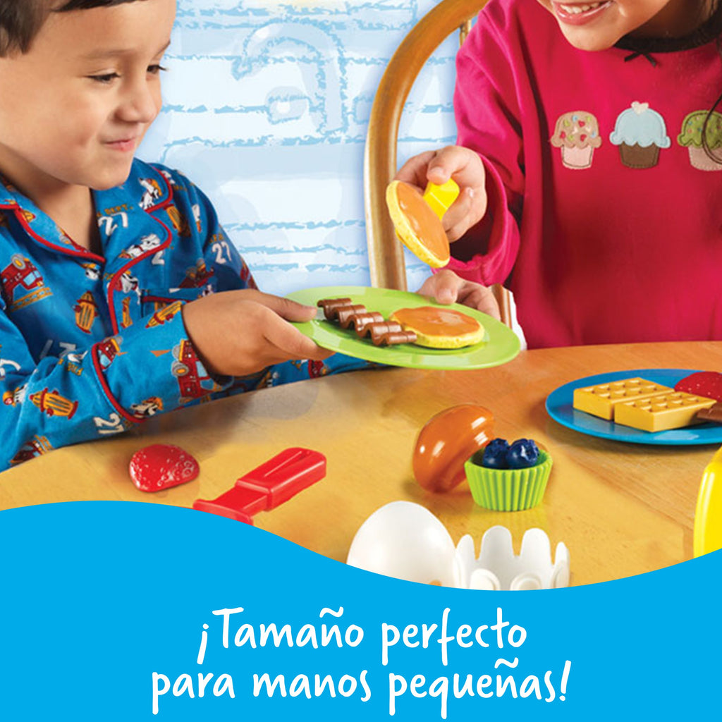 ¡Comienza el día con un buen desayuno!¡Que la mañana sea mas divertida preparando la comida mas importante del dia! Los niños rompen el huevo, dan la vuelta a los panqueques, rellenan el muffin con fruta, meten la tostada en la tostadora y preparan una comida deliciosa mientras desarrollan habilidades de motricidad fina y habilidades sociales cuando trabajan juntos para preparar el desayuno.