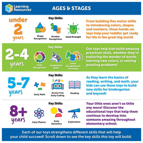¡Aprende mientras te diviertes con este pie de frutas! Padrisimo pie con divisiones en su interior listo para rellenarse con las diferentes frutas que trae. Enseña habilidades numéricas tempranas, patrones, resolución de problemas, procesamiento visual y mucho más. Incluye sus pinzas jumbo para que los niños refuercen la motricidad fina, especialmente el agarre de pinza. Las tarjetas de clasificación proporcionan pistas visuales que facilitan el éxito.