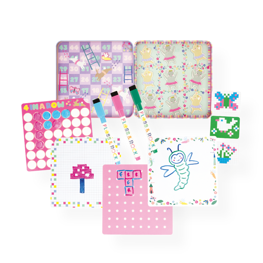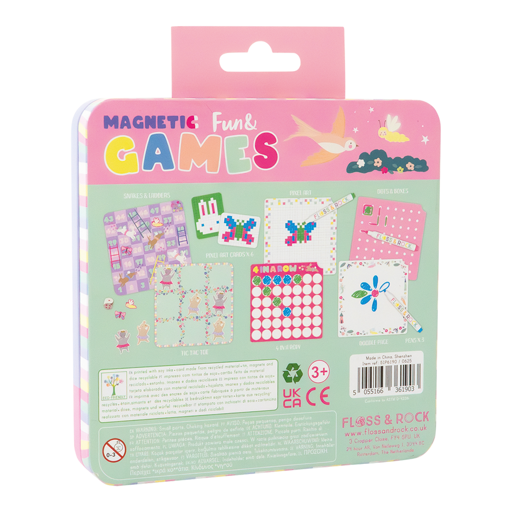 ¡Padrisima Caja Magnética de Diversión y Juegos está repleta de diversión para llevar! Descubre 6 actividades y juegos como; “Serpientes y Escaleras”, “Tres en raya”, “Pixel Art”, “4 en Raya”, “Puntos y Cajas” y una página para dibujar. Cada caja es reutilizable e incluye piezas magnéticas extraíbles, 3 rotuladores de borrado en seco de colores con gomas de borrar y un dado para jugar ¡Su diseño de Hada Arcoíris es perfecto para los amantes de los unicornios, las hadas y el arcoíris!
