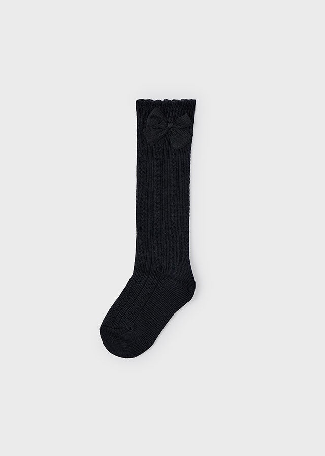 ¡Divinas y básicas calcetas con detalle de lazo! ¡Un basico para esta temporada! Altura arriba de la rodilla con detalle de lazo bordado.
