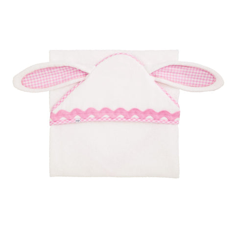¡Hermosa toalla con capucha de tierno diseño infantil! Diseño envolvente con la que podrás secar y abrigar a tu bebé después del baño. Capucha con detalle de orejas de conejo y bordado  ric-rac haciendo un hermoso contraste.
