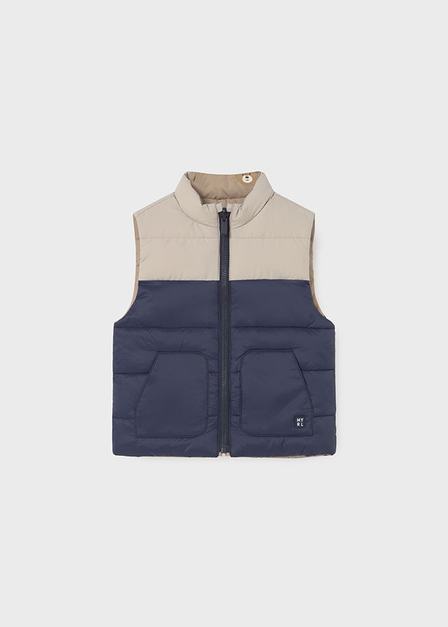 ¡Padrisimo y basico chaleco reversible!¡2 looks en uno! Usala por un lado de diseño color block o de color liso por el otro. De cuello redondo con capucha, sin mangas, cierre de ziper frontal, bolsillos laterales funcionales.