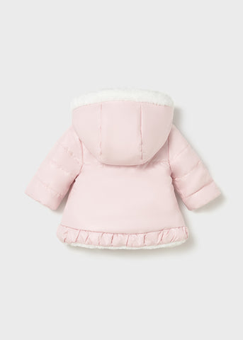 Chaqueta de cuello redondo con capucha removible, manga larga, cierre de ziper frontal, bolsillos laterales funcionales y lo mejor de todo, es reversible, lucela por un lado como chamarra de color liso rosa o del otro lado como si fuera un abrigo de peluche blanco ¡Con detalles que la hacen lucir elegante o casual!