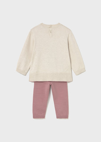 ¡Divino conjunto de 2 piezas tipo tejidas a juego! Sueter de manga larga, cuello redondo, cierre con botones en la espalda para facilitar la puesta de la prenda. Y sus pantalones a juego con elastico en la cintura para mejor ajuste.