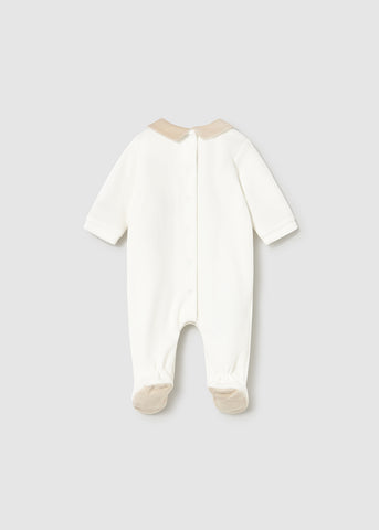 ¡Divino mameluco afelpado con detalles que lo hacen unico! Cuello camisero, manga larga, dibujos bordados frontales, cierre con botones a presión en la parte posterior y en la entrepierna para facilitar la puesta de la prenda.