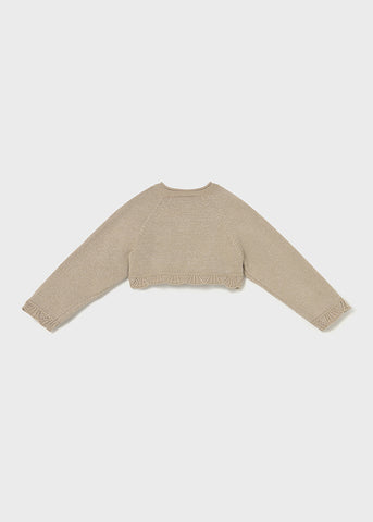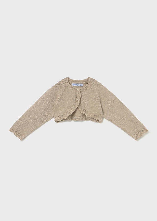 ¡Divino torerito con motivos calados unicos! De cuello redondo, manga larga, diseño corto de tipo bolero, cierre con botones en la parte delantera. Un "must-have" en el guardarropa de las niñas, ya que son prendas básicas y esenciales en su armario para completar cualquier look.