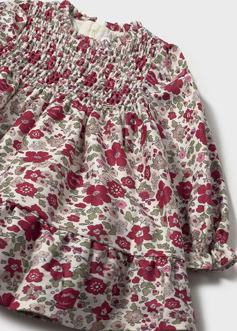 ¡Hermoso vestido de estampado de flores! ¡Vestido versatil pensado para cualquier tipo de ocasion! Cuello redondo, manga larga, detalles de nido de abeja, rizo y volantes, estampado de flores, cierre de ziper central trasero oculto. Modelo con forro interior.