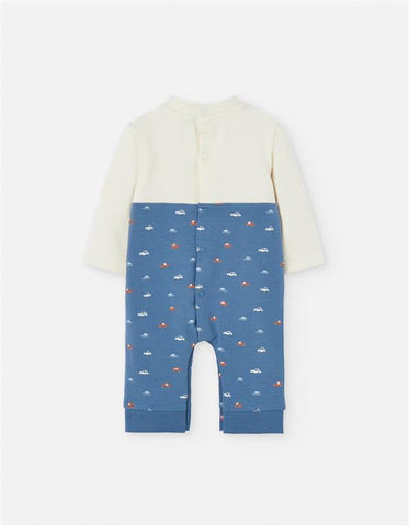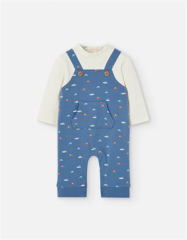 ¡Encantadora pieza que simula ser dos piezas! Cuello redondo, manga larga, overol sobrepuesto de tirantes con botones, detalle de bolsillo en el frente y cierre de botones a presion por la parte de atras y en la entrepierna para facilitar su puesta.