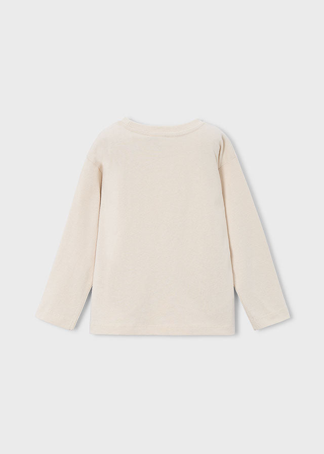 ¡Básica playera con imagen estampada de audifonos! ¡Los niños no querrán quitársela! De manga larga, cuello redondo y dibujo estampado en el pecho.