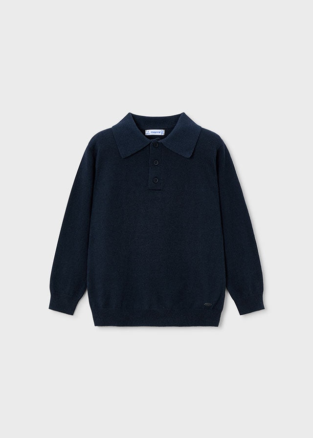 ¡Divina polo de tela tipo sueter ligero en color liso! De manga larga, cuello camisero y botones delanteros para facilitar su puesta.