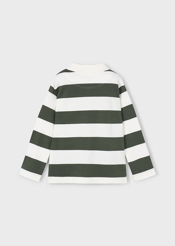 ¡Divina polo de diseño a rayas en color ciruela! De manga larga, cuello camisero y botones delanteros para facilitar su puesta.