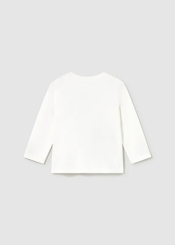 ¡Padrisima playera interactiva! ¡Levanta los flaps y descubre las sorpresas que guarda! ¡Los niños no querrán quitársela! De cuello redondo, manga larga y cierre de botones a presión de lado para facilitar su puesta.