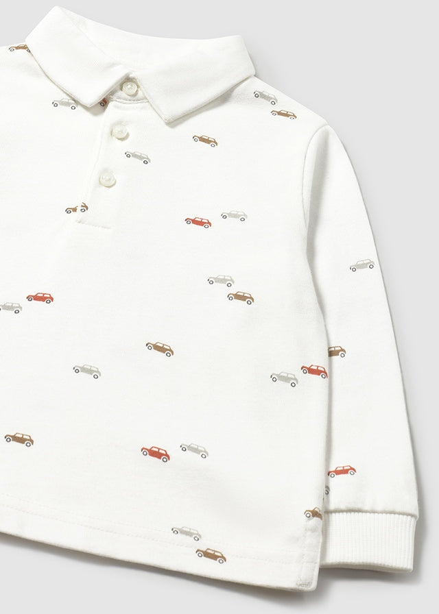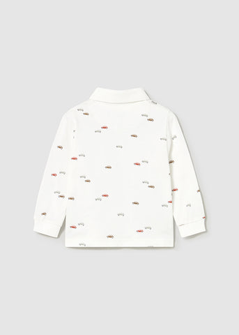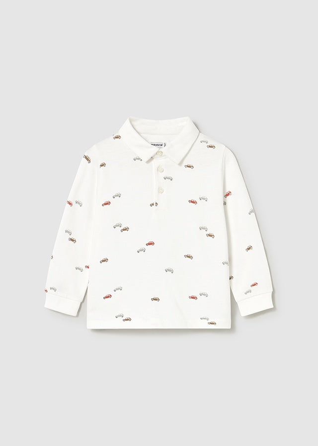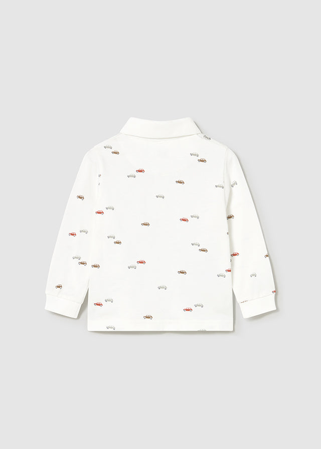 ¡Padrisima y basica polo de estampado de carritos! De manga larga, cuello camisero y botones delanteros para facilitar su puesta.