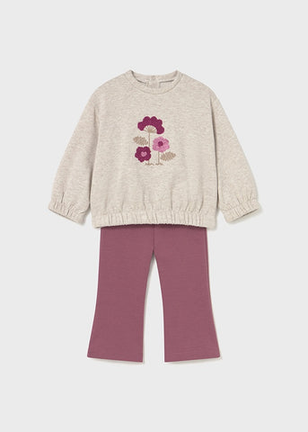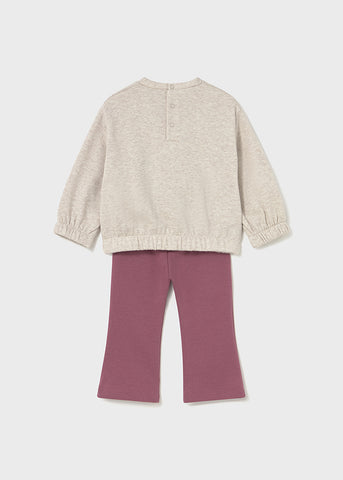 ¡Hermoso conjunto de sudadera y leggings a juego! Sudadera de manga larga con puños elásticos, cuello redondo, cierre con botones a presión en la parte posterior y bajo elástico para un mejor ajuste. Y sus leggings acampanados a juego de color liso con elastico en la cintura.
