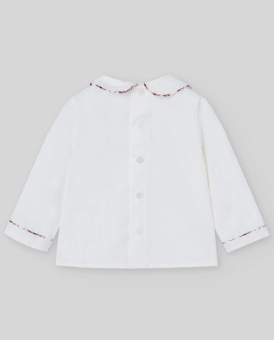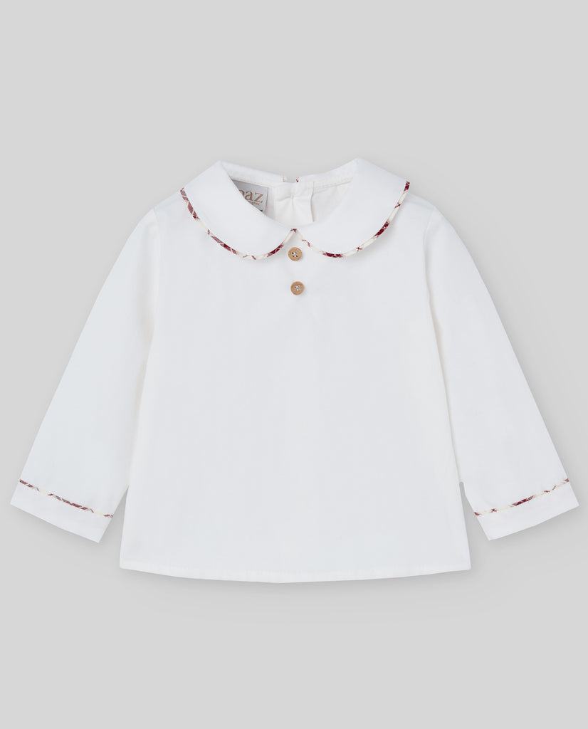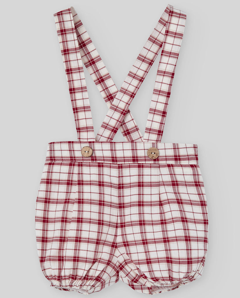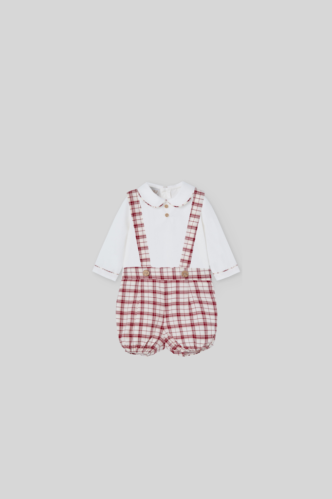 ¡Divino y tierno conjunto de camisa y shorts con tirantes a juego! ¡De colores navideños! Camisa de cuello camisero redondo, manga larga, botones decorativos frontales, cierre de botones por atras y con sus shorts a juego con tirantes ajustables, cruzados por detras, elastico en cintura y piernas para un mejor ajuste. Diseño de cuadros.