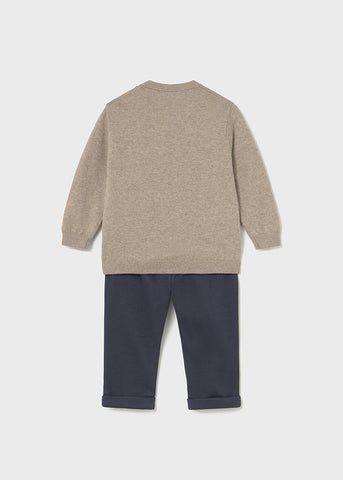 ¡Divino conjunto de 2 piezas a juego! ¡Versatil pensado para cualquier tipo de ocasion! Sueter de manga larga, cuello redondo, cierre con botones en el cuello para facilitar el ajuste, detalle de dibujo tejido con técnica intarsia. Y su pantalón a juego con elastico en la cintura y cierre con botón.
