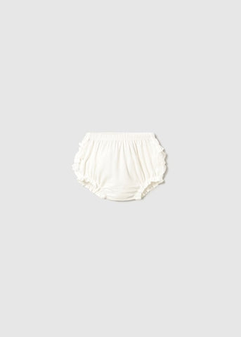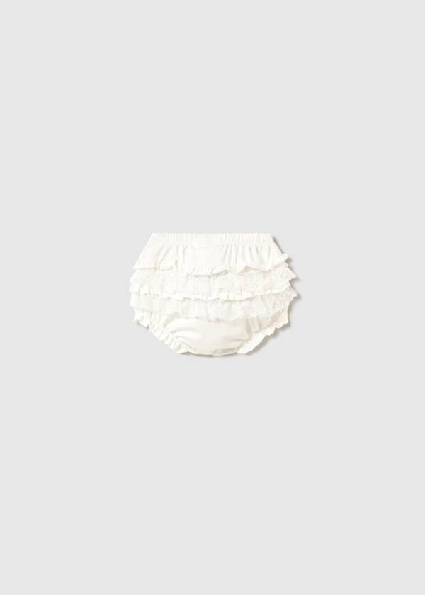 Calzoncito con elastico en la cintura y piernas para mayor ajuste, efecto bombacho y olanes en la parte de atras.