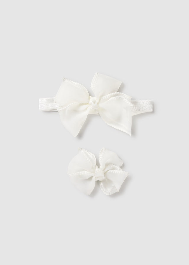 ¡Hermoso set de bandita con su moño a juego! ¡Ideal para hermanitas o para que sean sus primero accesorios que la acompañara en su crecimiento! Bandita delgada para la delicada piel de tu bebe, con hermoso moño en tul, detalle de orilla bordada y su moño de clip a juego, clip reforzado de tela, moño en tul con orilla bordada.