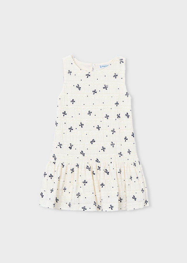 ¡Hermoso vestido con detalle que lo hacen unico! ¡Un vestido muy versatil pensado para cualquier tipo de ocasion! Vestido de cuello redondo, sin mangas, corte en el bajo con vuelo, detalle de encaje, cierre de unico boton por atras con detalle de abertura y de diseño estampado.