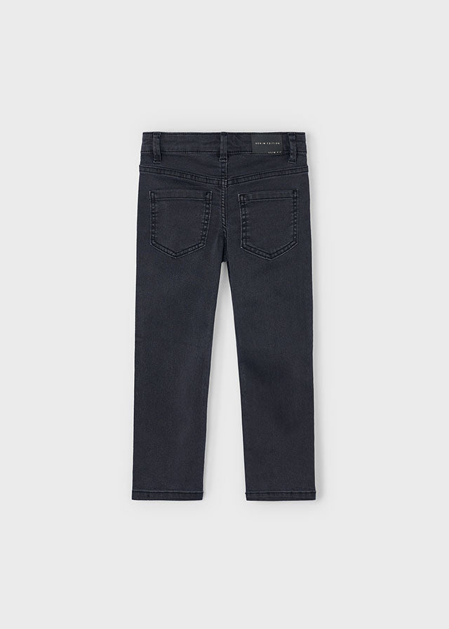 ¡Basicos y comodos jeans de mezclilla en tono azul medio! Pantalón largo de corte ajustado (Slim fit). Cierre de ziper simulado con botón, elástico regulable con botones en el interior de la cintura para mayor ajuste.