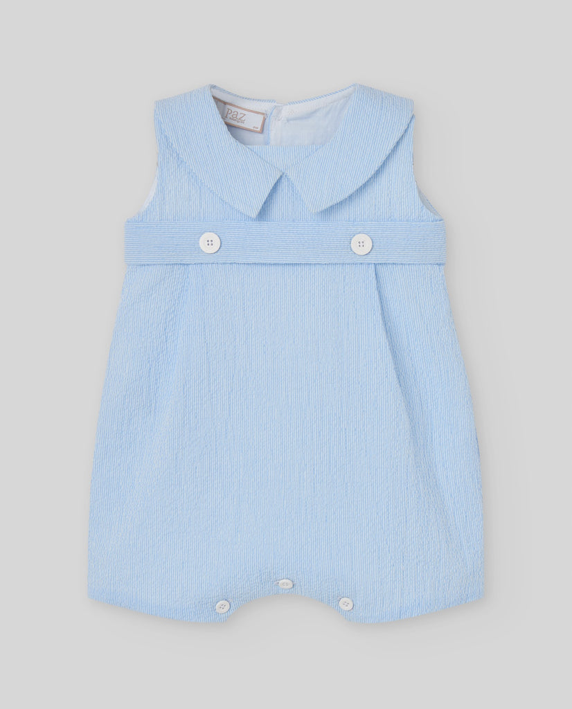 ¡Divino romper con detalles que lo hacen lucir elegante! De cuello camisero, sin mangas, detalle de cintilla con botones en la cintura, cierre de botones por atras y en la entrepierna para facilitar su puesta.
