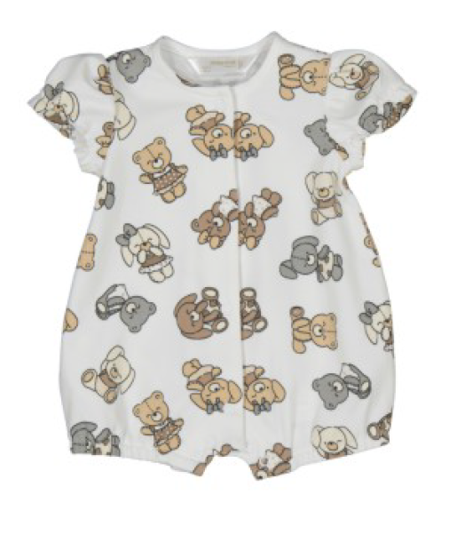 ¡Hermoso y basico romper para mantener fresco a tu bebe en dias de calor! De cuello redondo, manga corta con elastico para efecto bombacho, cierre de botones a presion por el frente y en la entrepierna para facilitar su puesta.