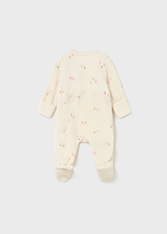 ¡Tierno mameluco con un toque infantil! De cuello redondo, manga larga, diseño estampado, cálido tejido de algodón con tacto suave y aterciopelado, abertura lateral completa que cierra con botones a presión y también en la parte posterior. Detalle de bolsillo frontal.