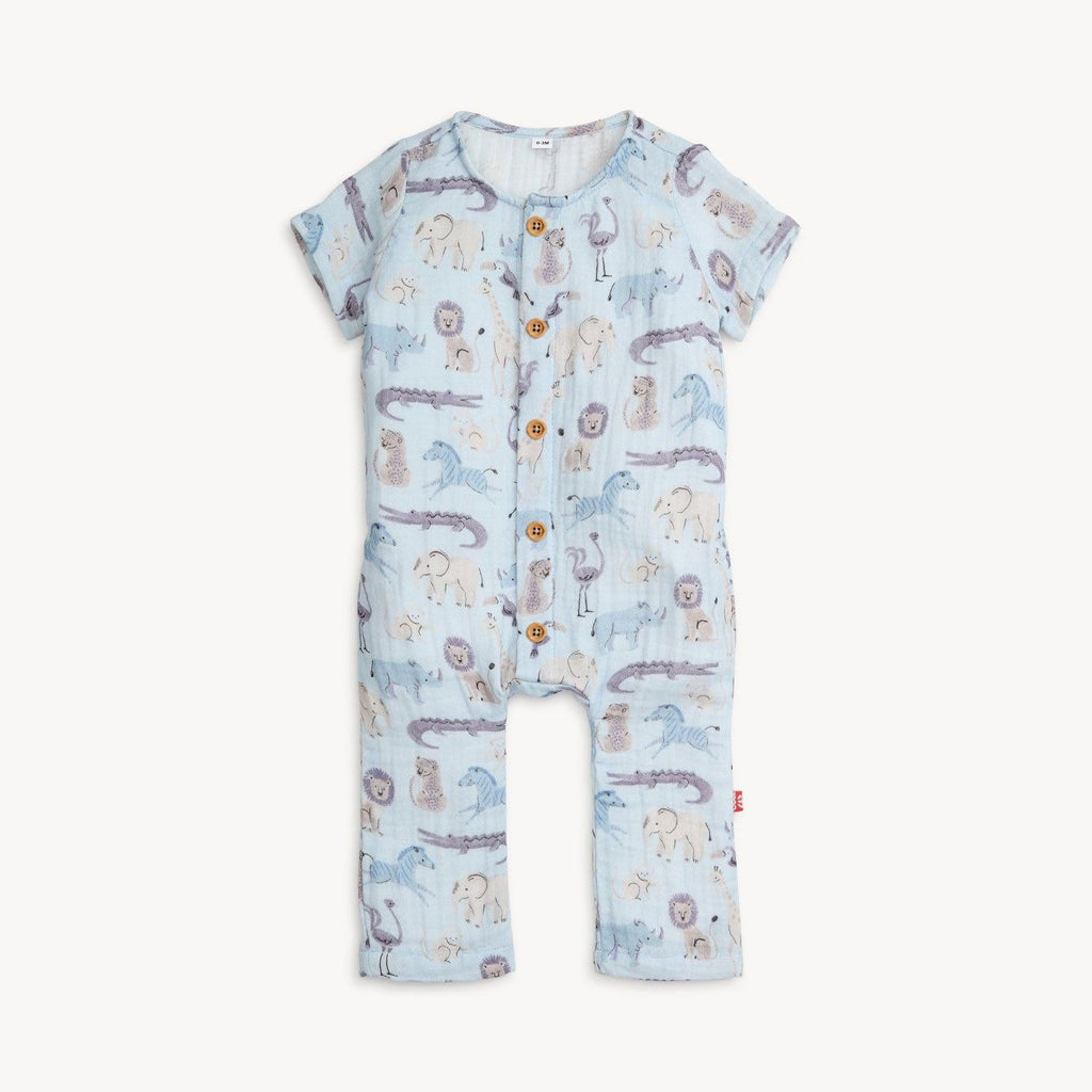 Ya no tendrás que preocuparte por los cambios, simplemente abre el atuendo, inserta al bebé y ¡LISTO! Se cierra prácticamente por sí solo. ¡La forma más sencilla de vestir a un bebé! Aparte está hecho de la mejor calidad, hecho de gasa de algodón suave y transpirable diseñado para mantener al bebé fresco en los días cálidos e incluso en los días más calurosos del verano. Detalle de bonitos botones de imitación para un look relajado.