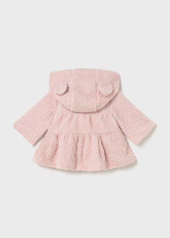 ¡Hermosa chamarra de suave tejido con exterior de pelo! De cuello con capucha con detalle de aplique de orejitas, manga larga y cierre central delantero de zíper.