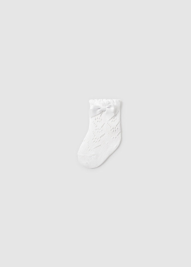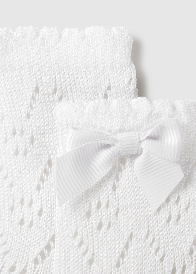 ¡Divinas y básicas calcetas caladas con detalle de lazo! ¡Un basico para esta temporada! Altura al tobillo, diseño calado, con detalle de lazo bordado.