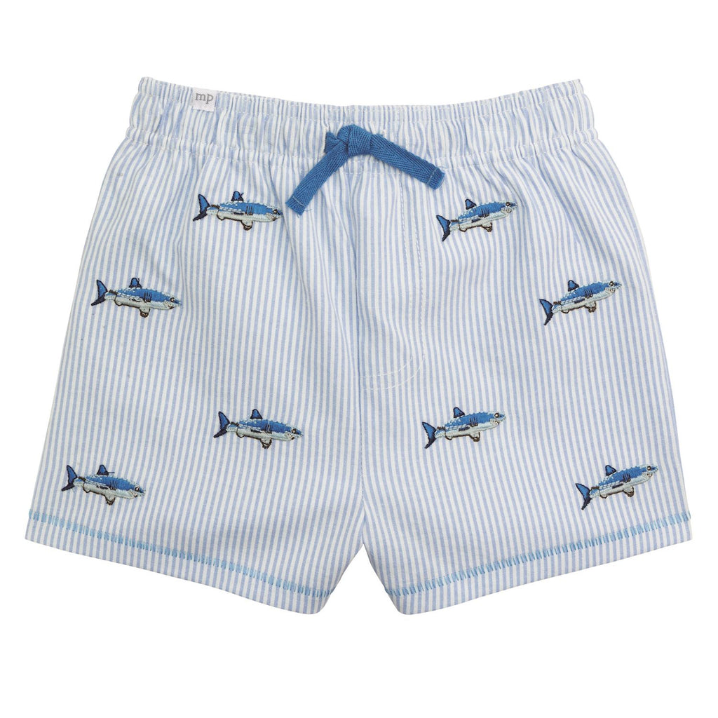 ¡Padrisimo traje de baño de diseño a rayas con tiburones bordados para niño! Short corto, cordón ajustable en la cintura para ajustar el talle, diseñado para brindar comodidad y movilidad en actividades acuáticas y con detalle de tiburones bordados ¡Ideal para disfrutar del agua con estilo y confianza!
